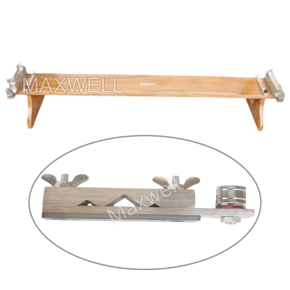 Durable Wooden Attachment CA-240 for Kelvin Bridge, designed to hold samples up to 240 mm. Built with a strong teak wood stand, heavy clamps, and a 1-meter stainless steel scale for highly accurate low-resistance measurements.