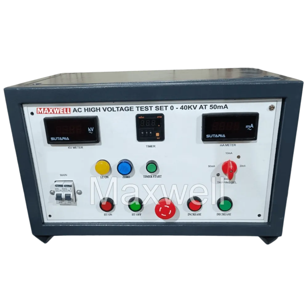Leakage Current Measurement Test Setup specification defines the test equipment, sampling method, and specimen preparation procedure for leakage current measurement designed as per BS EN 50397‐1:2020 for Medium Voltage Covered Conductors (MVCC). This is also known as AC High Voltage Test Set 0-40 kV @50mA