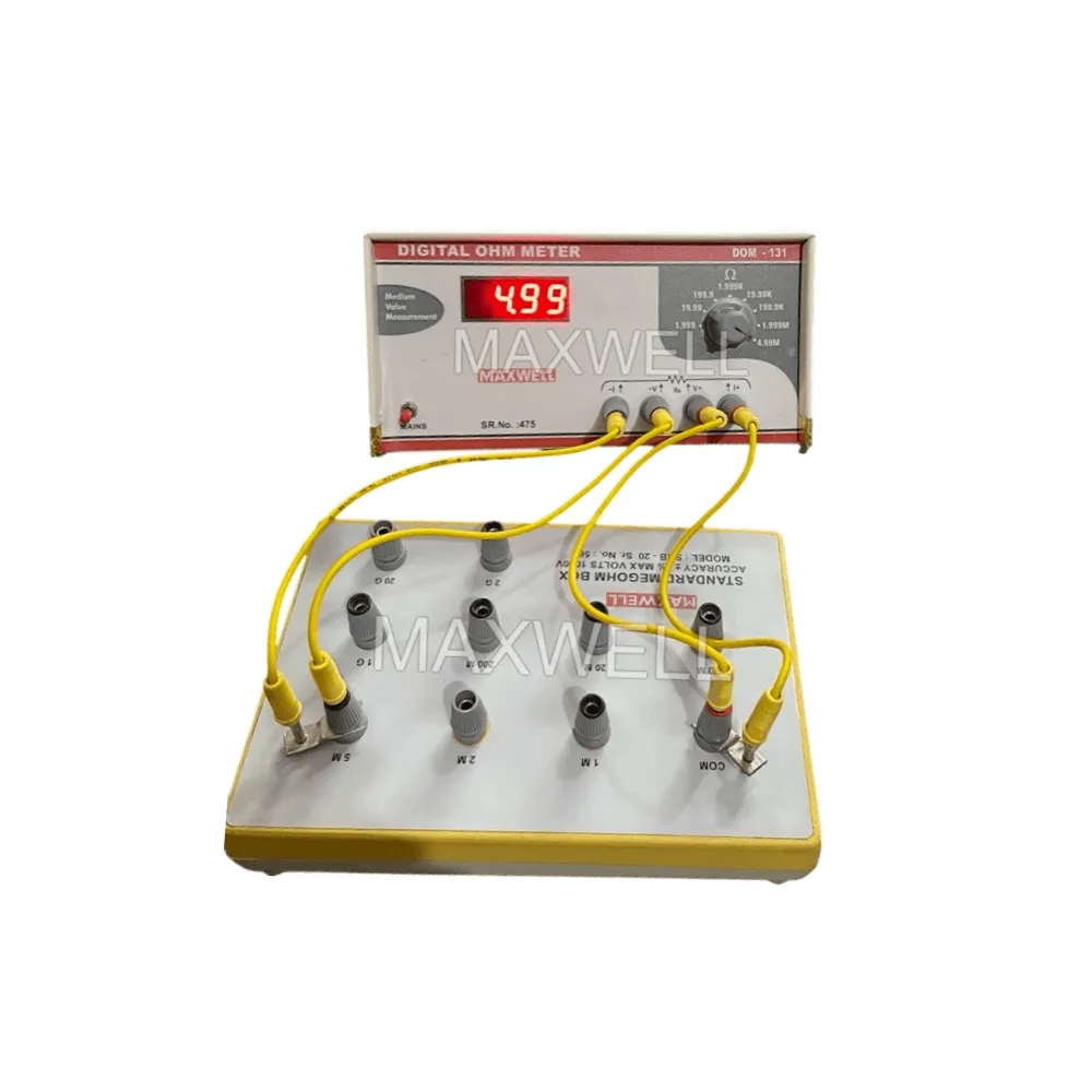 The Digital Ohm Meter DOM-131 is a precision bench-type resistance measuring instrument designed for accurate and reliable measurement of electrical resistance across a wide range. Built in compliance with IS 7098 Part II standards, it is suitable for laboratory testing, cable manufacturing, and quality control applications.