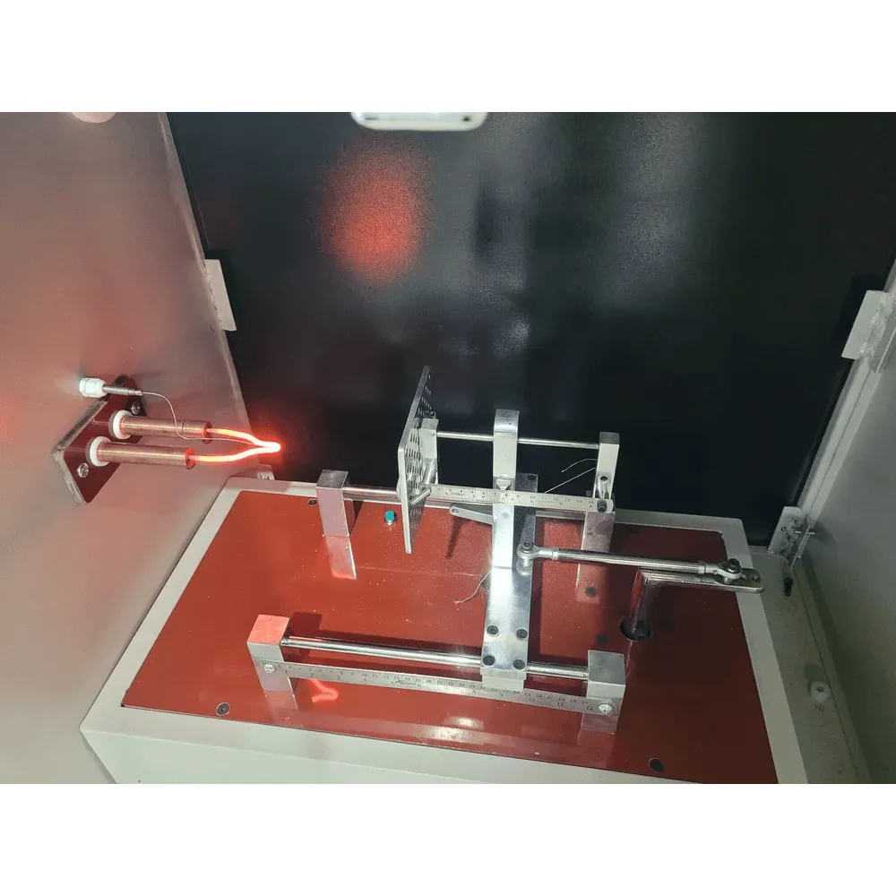 The spacious draught-free chamber (≥0.5 m³) prevents external airflow from affecting the results and allows clear observation of flame spread, ignition, or glowing behavior. The chamber design ensures that any burning or molten particles fall safely on the specified layer as per relevant IS/IEC standard.