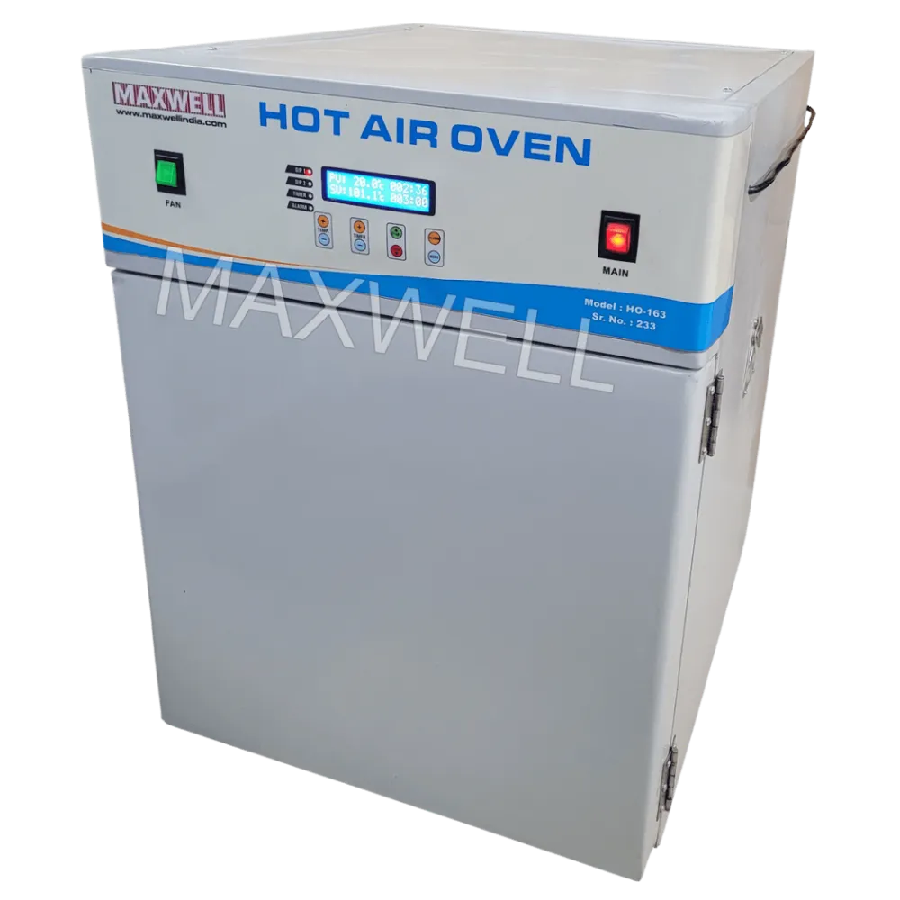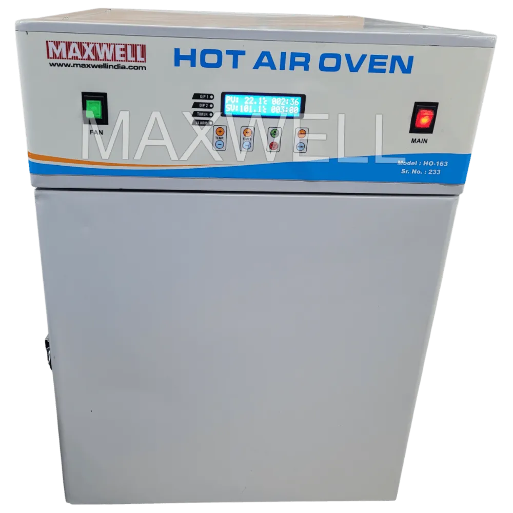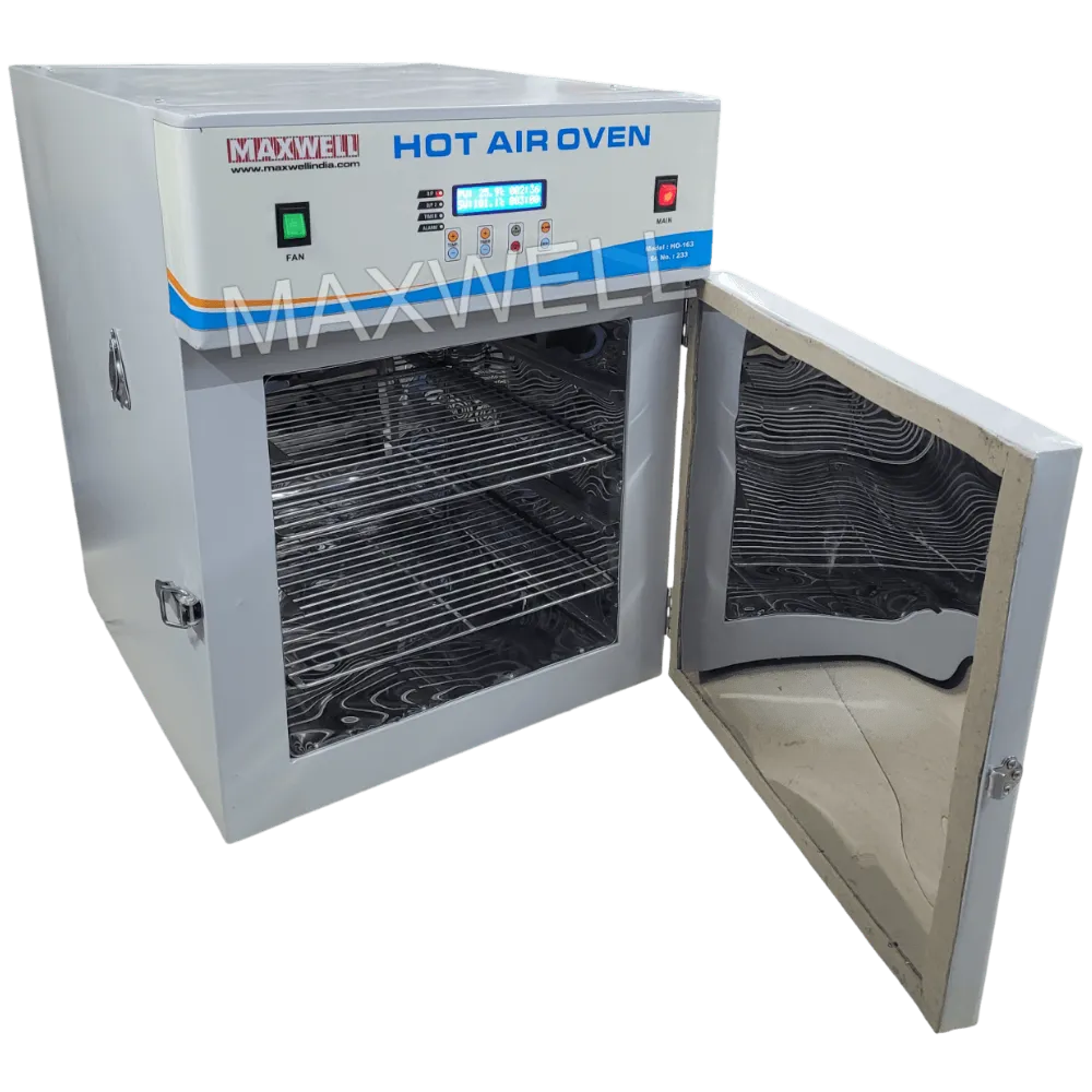 This hot air oven offers a maximum temperature of 250°C, controlled through a PID-based temperature control system for accurate and stable heating performance. The digital display provides easy monitoring, ensuring consistent temperature maintenance and timer option throughout the process.
