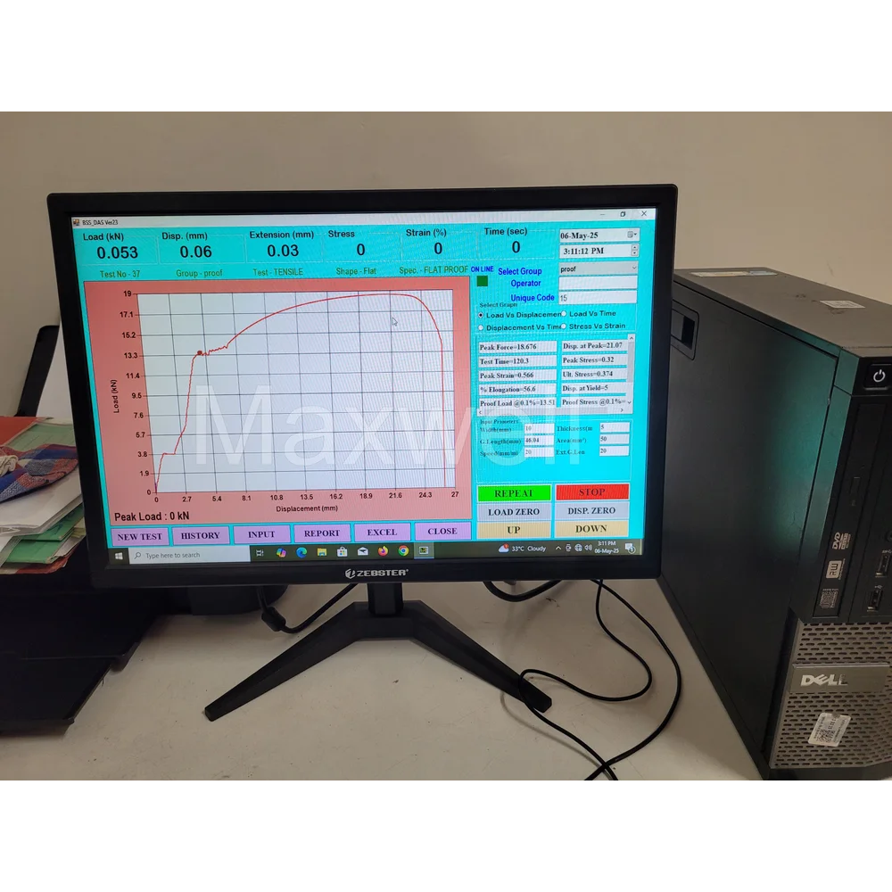 - Real-time graph plotting of stress vs. strain